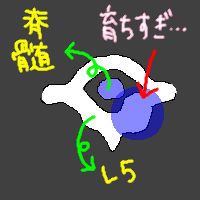 | 約4ヶ月ぶりに外来日でした。 ほけほけと待っていたら先生が来たわけですが、初っ端から名前間違えられましてねぇ(汗) 「はい~宮地さんこんにちわ~・・・って違うわ、間違えた。宮地さんは前の人や」ってをいっっ! 「宮地さんじゃないですけど、こんにちわ」って言っときました。 「骨は完全に付いてるなぁ~」 「・・・・・・」 見ないで下さい!もう見ないでいいです!! と心の中で叫んでいました。 貼り付けられた6枚のレントゲンフィルムにはしっかりと皮下脂肪さんが・・・・ ダンゴ虫のポーズなんてもう・・・・すぐにでも剥ぎ取りたいぐらい酷いものでした。 でも、口に出したらきっと突っ込まれること間違いないと思ってダンマリを決め込んだのです。 「しびれはどうや?」 「ふふ~ん。ありますヨ?」 毎度毎度のやりとりで、私がこう答える度にちょっとギョッとして、残念そうにする先生には申し訳ないですが、あるもんはあるんで仕方が無いのです。 やっぱり触診もするってことで、ベッドに上がるように言われました。 手書きカルテをペラペラとめくりながら先生が言うには、 「やっぱり骨がちょっと分厚くなってる所為で狭いねんなぁ~・・・・前にも絵を描いてて・・・・僕の拙い絵やねんけど・・・・」 と、ガガガ~っと椅子ごと後退してきた先生が見せてくれたのはこんな感じのイラストでした。 いえ、カラーなんかではなかったですがね・・・・ 真ん中の水色のところが脊髄で大事な神経が走ってるところですね。 とりあえず、右下の青い部分。 ここの骨がちょっと育ちすぎてるんだそうです。 グ~リグリとボールペンで塗りつぶされてましたが、実際のCTで見ても、その部分は内側にも外側にも少し分厚い感じで写ってましたね。 いつまでも続いてる痺れの原因として、ヘルニアもあるけど、これも一つの原因かも知れないと言われました。 一通り触診もして、靴を履いてた時です。 「まぁこれも削れば治るねんけどな」 「削るっ!?」 「でも同じところ何回も切るのはなぁ・・・・」 「良いです!要らないです、今は」 そこへ看護師さんが私の以前のCTフィルムを持ってきてくれまして、改めて見せてもらいました。 「ここ。な?」 「あ~ほんとやぁ・・・・内側にも外側にも分厚い感じですね」 「なんらかの動きをした時に当たってるんやろうな」 「うーん・・・」 「やっぱり経過見ていくしかないな」 「・・・・はい」 このまま続くんですかね・・・・この痺れと違和感って。 もう何も無かった頃の感覚の方がどんなだったかわからないぐらいなんですけど。 んなことを思いながら、カルテに今日の経過報告が書かれていくのをボーっと見てました。 「お仕事はどうですか?順調??」 「あ~、はい。なんとか」 「整形外科って言ってたっけ?」 「はい、整形ですよ?」 「・・・・・・みんな元気でやってる?」 「みんな?元気で・・・?えーと・・・(日常を思い巡らせました)はぁ、まぁ・・・元気ですねぇ」 「そうかぁ・・・あぁ、今日お仕事休んで来てくれたんか」 「そうです!休みました」 なぜか深々とお辞儀されました(笑) 何をなさるかね~。自分の体のことなんだからそんなの当たり前じゃないっすか。 「今日ね、お花見なんですって、向こうは」 「!?・・・良いなぁ~。なんっでそんな時間あるのか分からんわぁ~!僕なんかこれから予約だけでも40人以上診なアカンのに」 「えぇ!?これから40人ですか!?」 だって、もうすぐお昼だよ??? 「そう、すごい人気で・・・人気外来で♪自分で言うのもなんやけど」 「すごー」(一言余計だけど;) 「午前中で20人以上。今までで見てるからなぁ」 「え~!!先生一日60人ぐらい診てるんですか!?こっちのK先生並みじゃないですか!」 ちょっとちょっと!!私の職場の方は一人で60人越えの先生は一人しかいないよ?? 医師の人数が多いからってこともあるだろうけど、だったらこっちが医師数的にも不釣合いじゃんねぇ? 過剰労働だよ。。同じ系列なのに。 おもむろに他の診察室の診察状況をパソコンいじって見せてくれたんですが・・・・ひゃ~名前がズラリです。 「向こうは忙しいのん?」 「忙しいですけど・・・・こっちほどじゃない気がしてきました・・・待合の椅子空いてないですもんねぇ」 「S先生の患者さんがなぁ~」 「S先生って一日平均何人ぐらい診てるんですか?」 「一日80人とか・・・・」 「80!?」 死ぬ・・・・・毎日そんなんじゃあ死んじゃうわ。 「先生、ちなみに今度は人事、回ってきました?」 「全然!僕から上は素通りやな・・・・△△(私の職場の方)に行かせてくださいっていう嘆願書も何回か出してるんやけどな。どこかで嫌われてるんか知らんけど」 「う~ん・・・・なんでですかねぇ~」 でもね、先生。Y先生がこの間の送別会の時言ってたよ? K先生は大学の要だからって。研究の方で忙しいからな~って。 もし社交辞令だとしても誇れる事だと思うなぁ。 ま、これは話してあげませんでしたけどねw 「次は3ヵ月後・・・・・6月・・